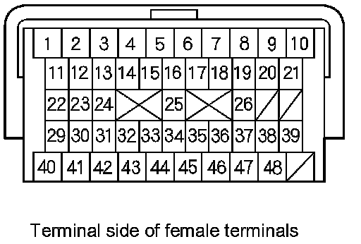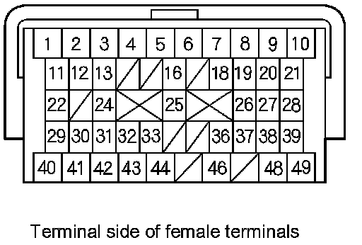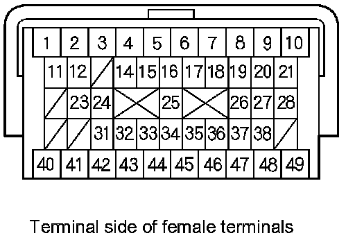 PCM A/T Control System Inputs and Outputs at PCM connector B (Triangle) (49P)