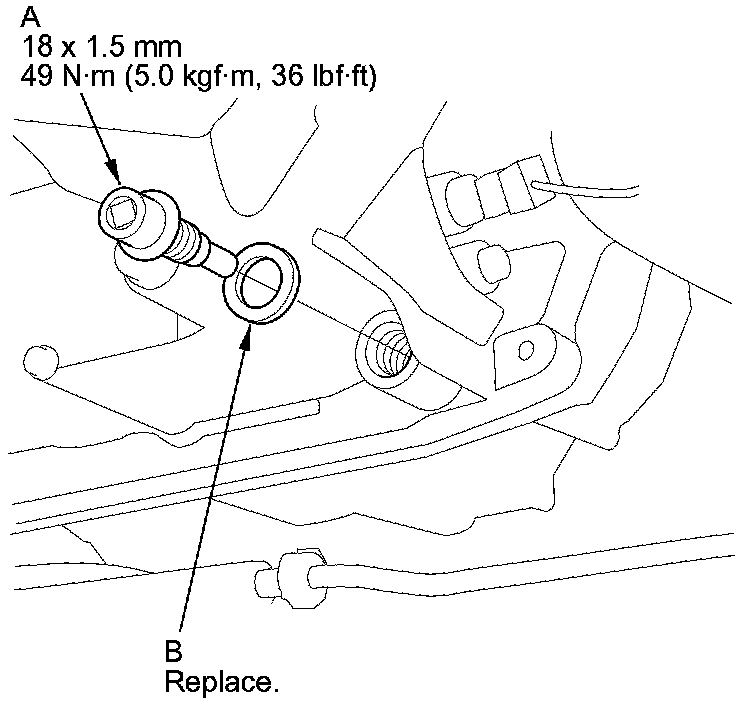 5. Disconnect the ATF temperature sensor connector (A), then remove the ATF temperature sensor (B).