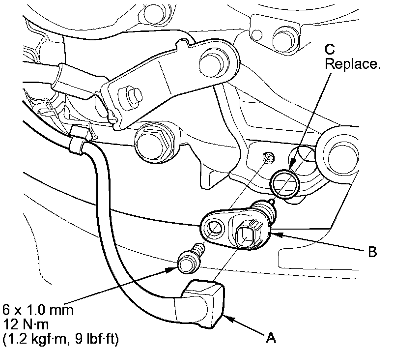 6. Install a new O-ring (C) on a new ATF temperature sensor, and install the ATF temperature sensor.