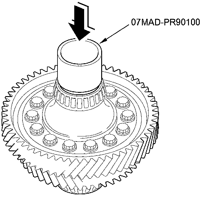 2. Install a new carrier bearing until it bottoms using the 45 x 55 mm attachment and a press.