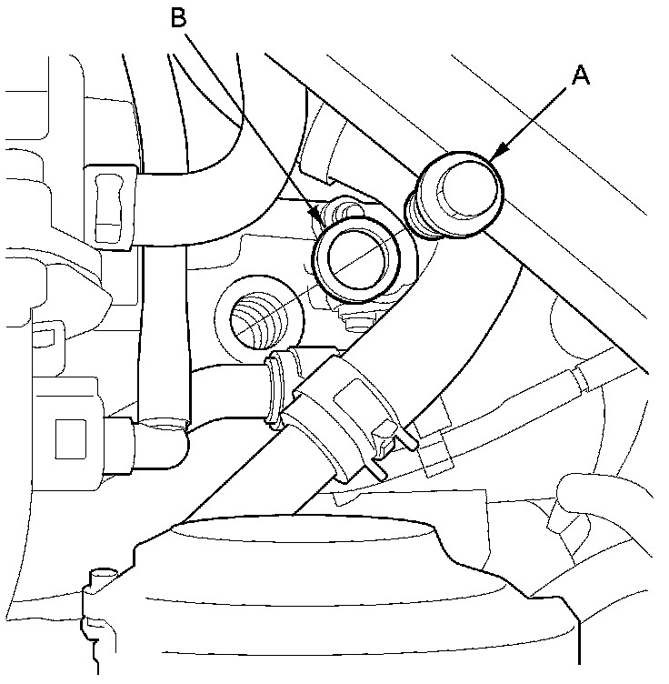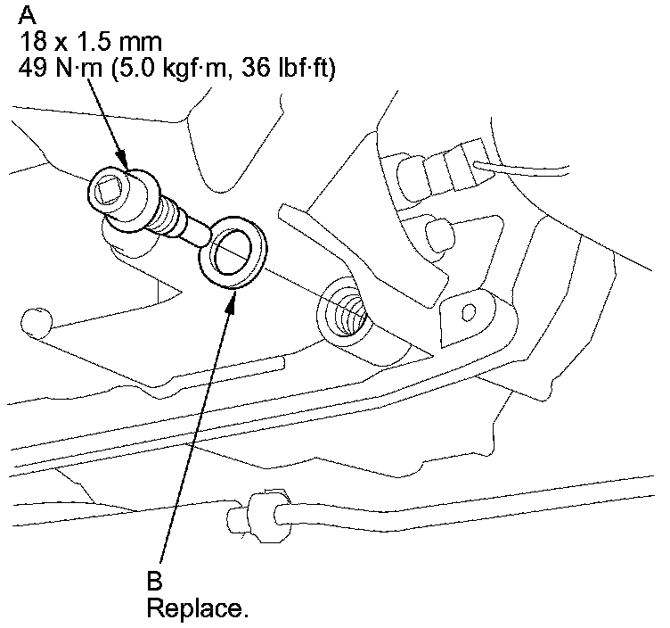 7. Remove the ATF filler bolt (A) and the sealing washer (B).