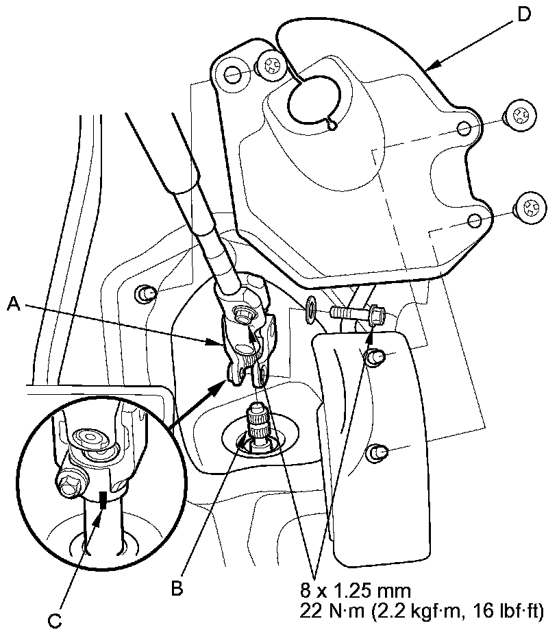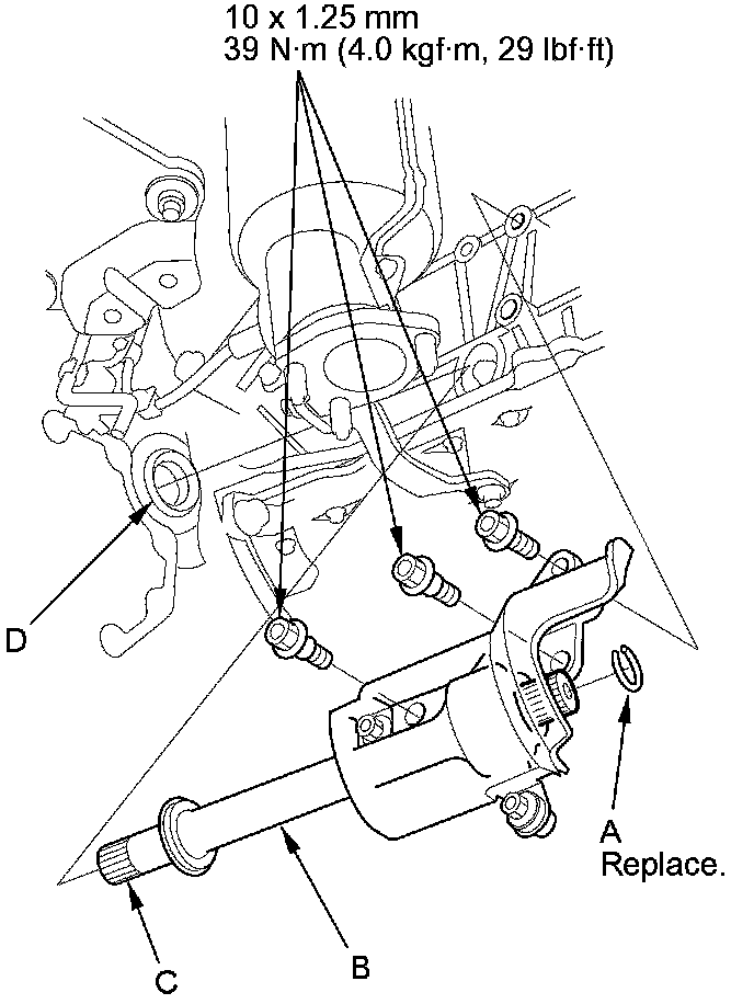 NOTE: Insert the intermediate shaft carefully to prevent damaging the oil seal (D).