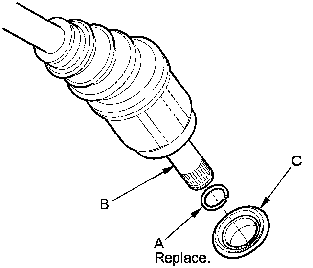 10. Clean the areas where the intermediate shaft contacts the transmission (differential) with solvent, and dry with compressed air. Apply ATF to the intermediate shaft splines (C), then install the intermediate shaft, be sure not to allow dust or other foreign particles to enter the transmission.