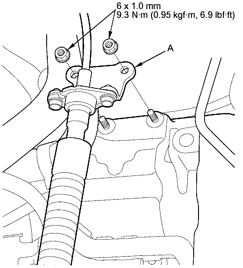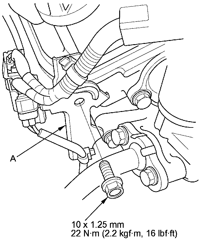 45. Install the engine mount control solenoid valve bracket (A) to the rear cylinder head.
