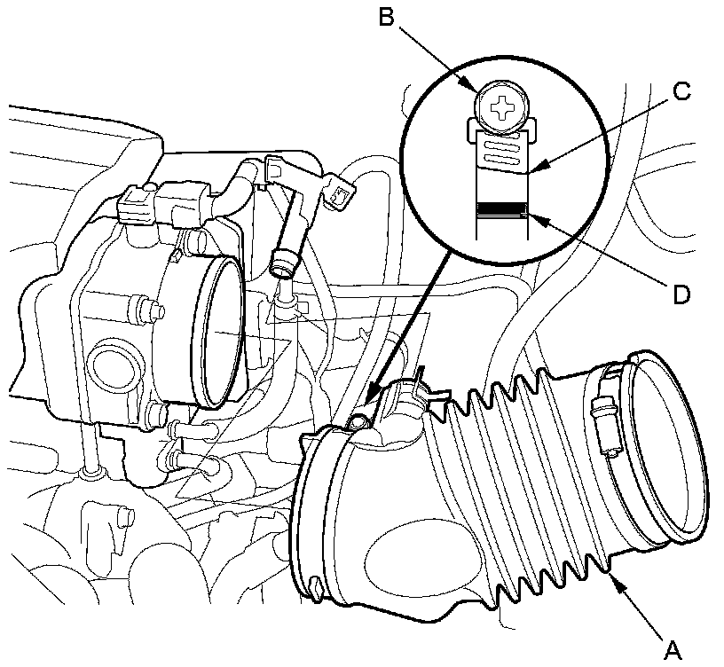 NOTE: When tightening the screw (B), align the edge (C) of the band with the mark (D) painted on the band.