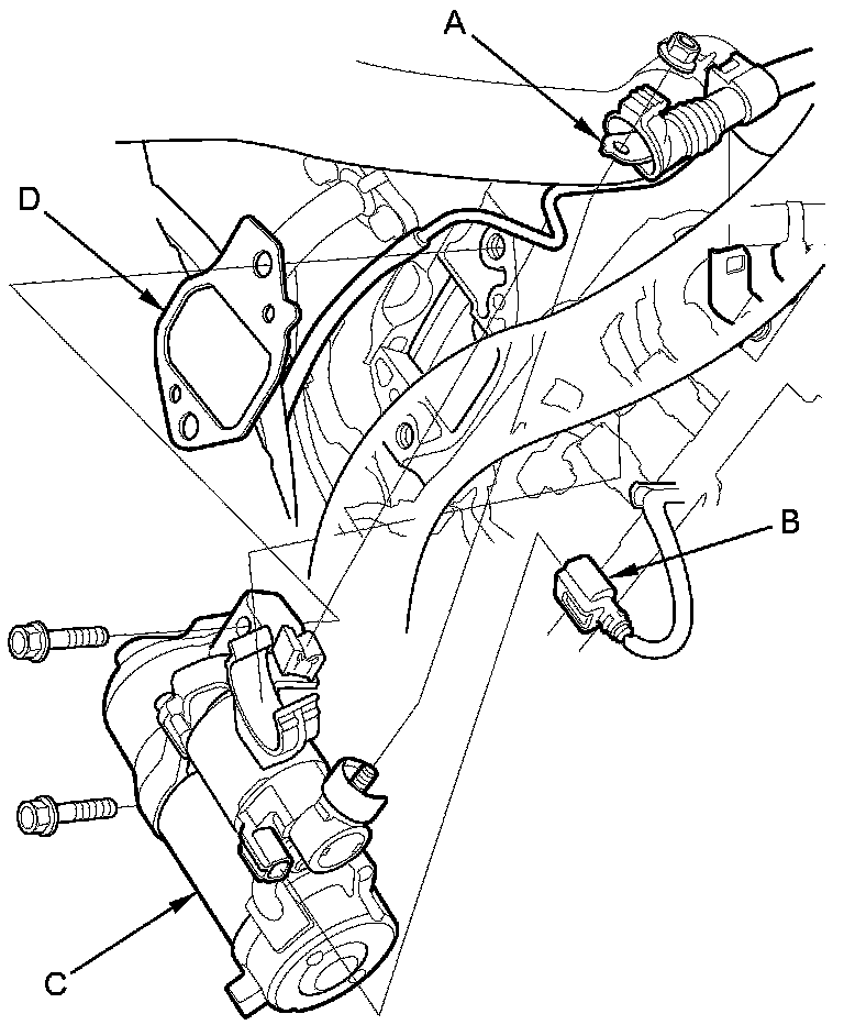 18. Remove the starter and the gasket (D).