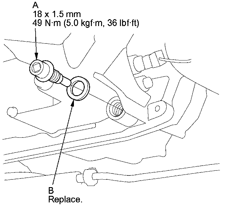 45. Reinstall the drain plug with a new sealing washer (B).