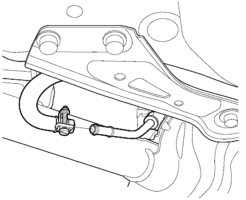 61. Loosen the hose clamp bolt, then disconnect the P/S fluid hose from the fluid line at the left front of the front subframe.