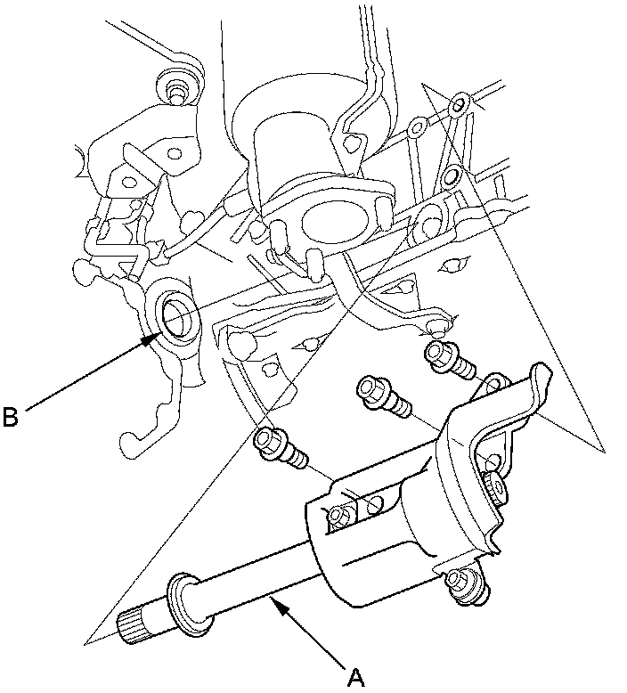 NOTE: Plug the intermediate shaft hole (B) to prevent dirt and solvent from entering the transmission.
