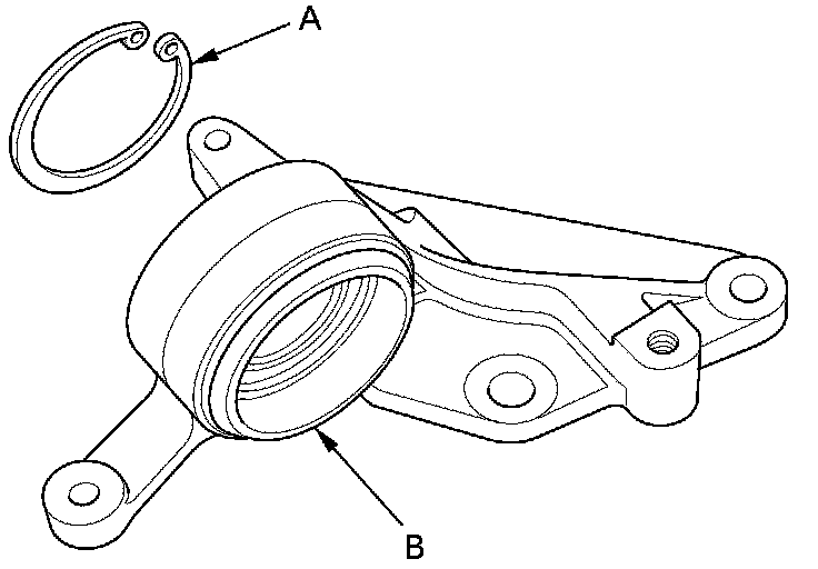 4. Remove the internal snap ring (A) from the bearing support (B).