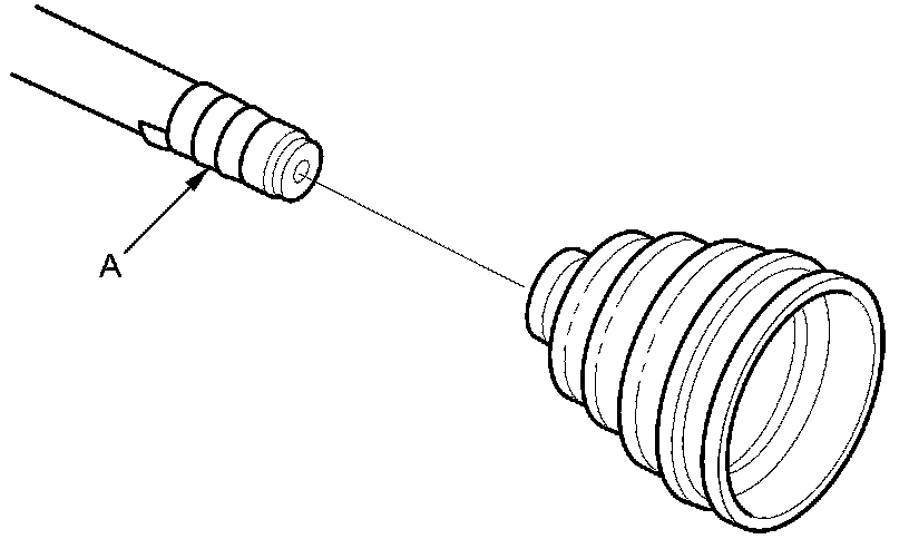 2. Slide the outboard boot (A) partially toward the inboard joint side. Be careful not to damage the boot.