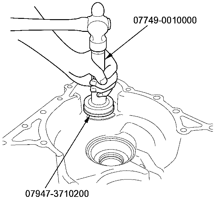 3. Drive a new bearing until it bottoms in the transmission housing using the 15 x 135L driver handle and the 66 mm oil seal driver.