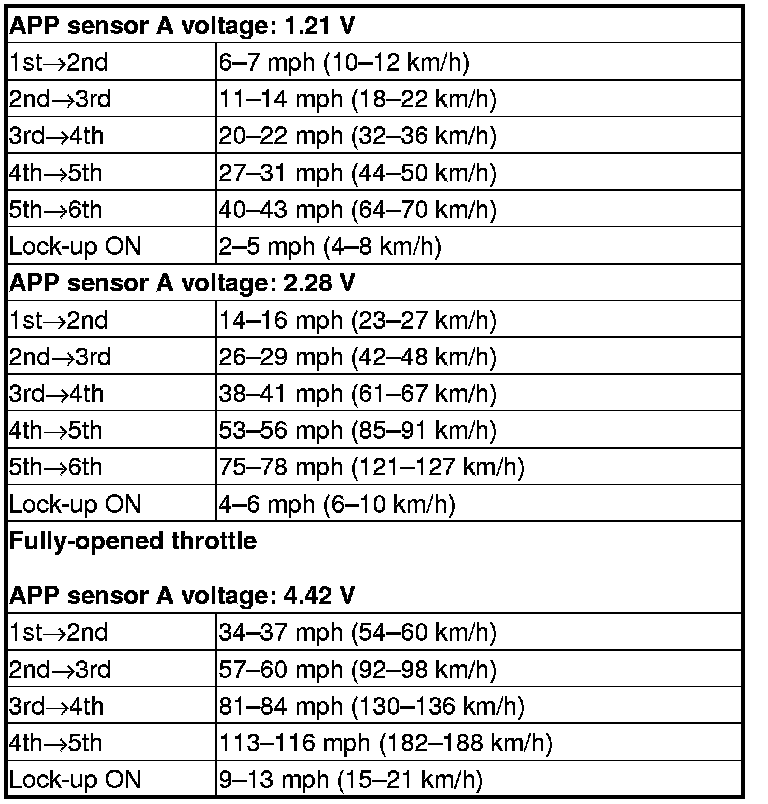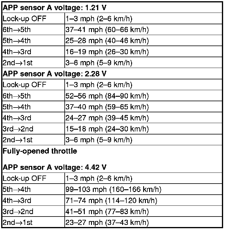 9. Monitor the HDS and accelerate quickly until APP Sensor A reads 1.21 V. Maintain a steady throttle until the transmission shifts to 6th gear, then slow the vehicle and come to a stop.