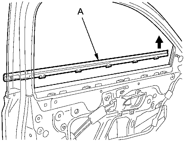 4. Pull up the door glass outer weatherstrip (A), then remove the weatherstrip.
