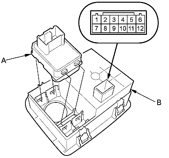 2. Remove the multi switch (A), and disconnect the connectors (B).