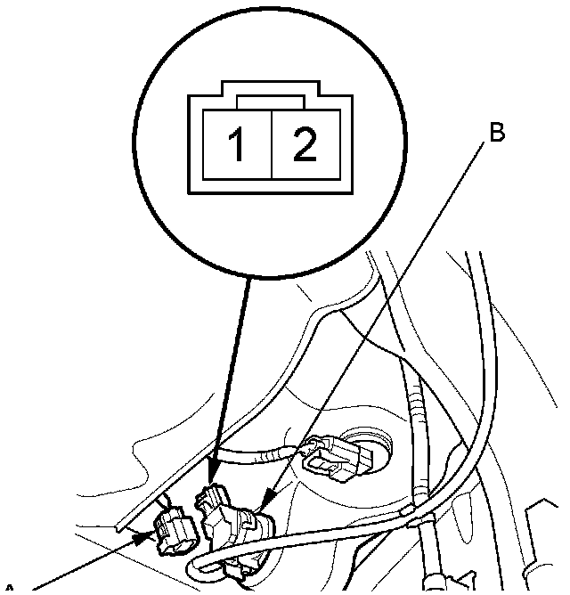 2. Disconnect the 2P connector (A) from the windshield washer motor (B).