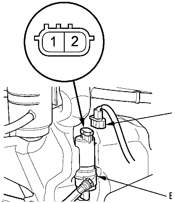 3. Test the motor by connecting battery power to terminal No. 1 and ground to terminal No. 2 of the washer motor. The motor should run.