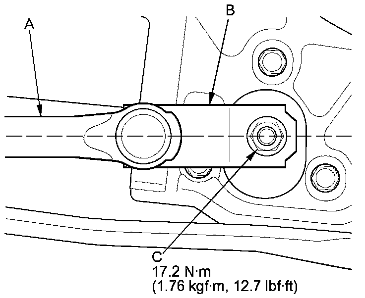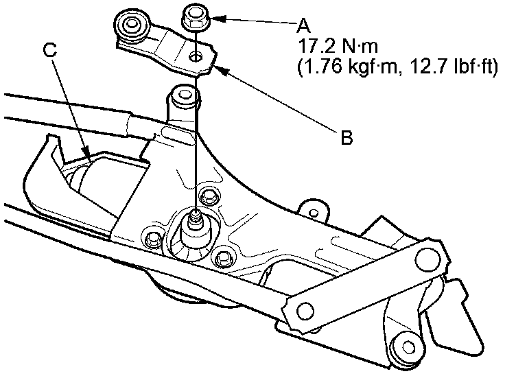 2. Replace the link: Remove the nut (A) and the link (B) from the motor (C).