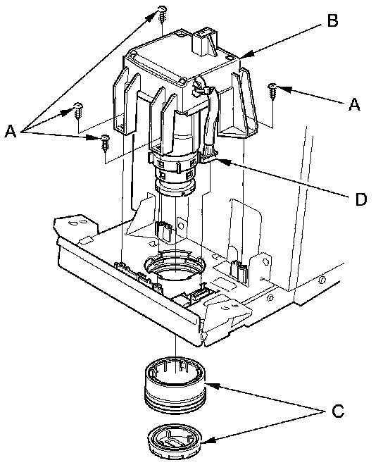 3. Remove the screws (A) and the jog dial (B) from the interface dial (C).