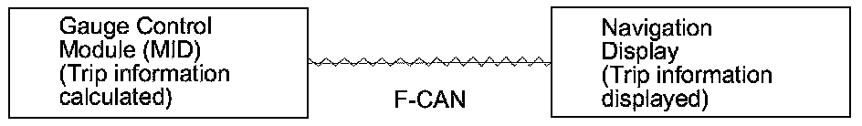 The navigation system displays trip computer information that is calculated by the gauge assembly and sent to the navigation unit via F-CAN bus. The navigation system dose not calculate or track any trip computer functions, it only displays the information.
