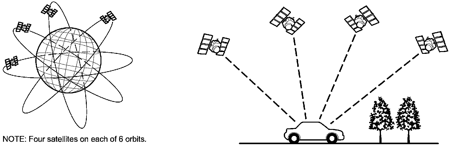 The global positioning system (GPS) enables the navigation system to determine the current position of the vehicle by using the signals transmitted from the satellites in orbit around the earth. The satellites transmit the satellite identification signal, orbit information, transmission time signal, and other information. When the GPS receiver receives a signal from four or more satellites simultaneously, it calculates the current position of the vehicle based on the distance to each satellite and the satellite's position in its respective orbit.