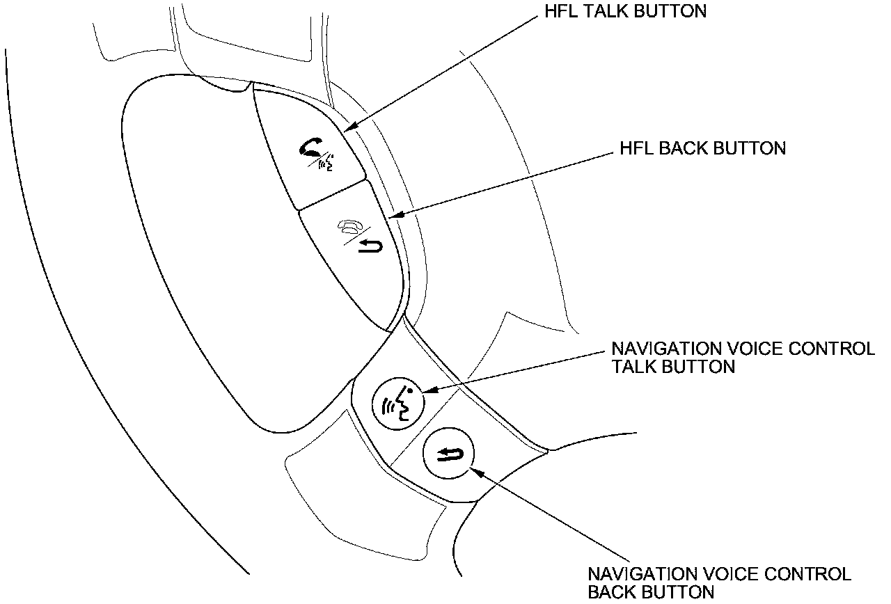 This navigation system also has voice recognition that allows voice control of most of the navigation functions. The Navigation TALK and BACK buttons on the steering wheel activate the voice control. The voice control also allows control of the audio and climate functions.
