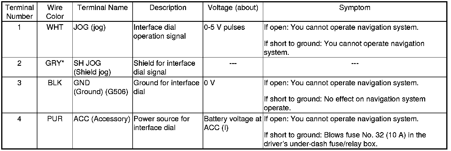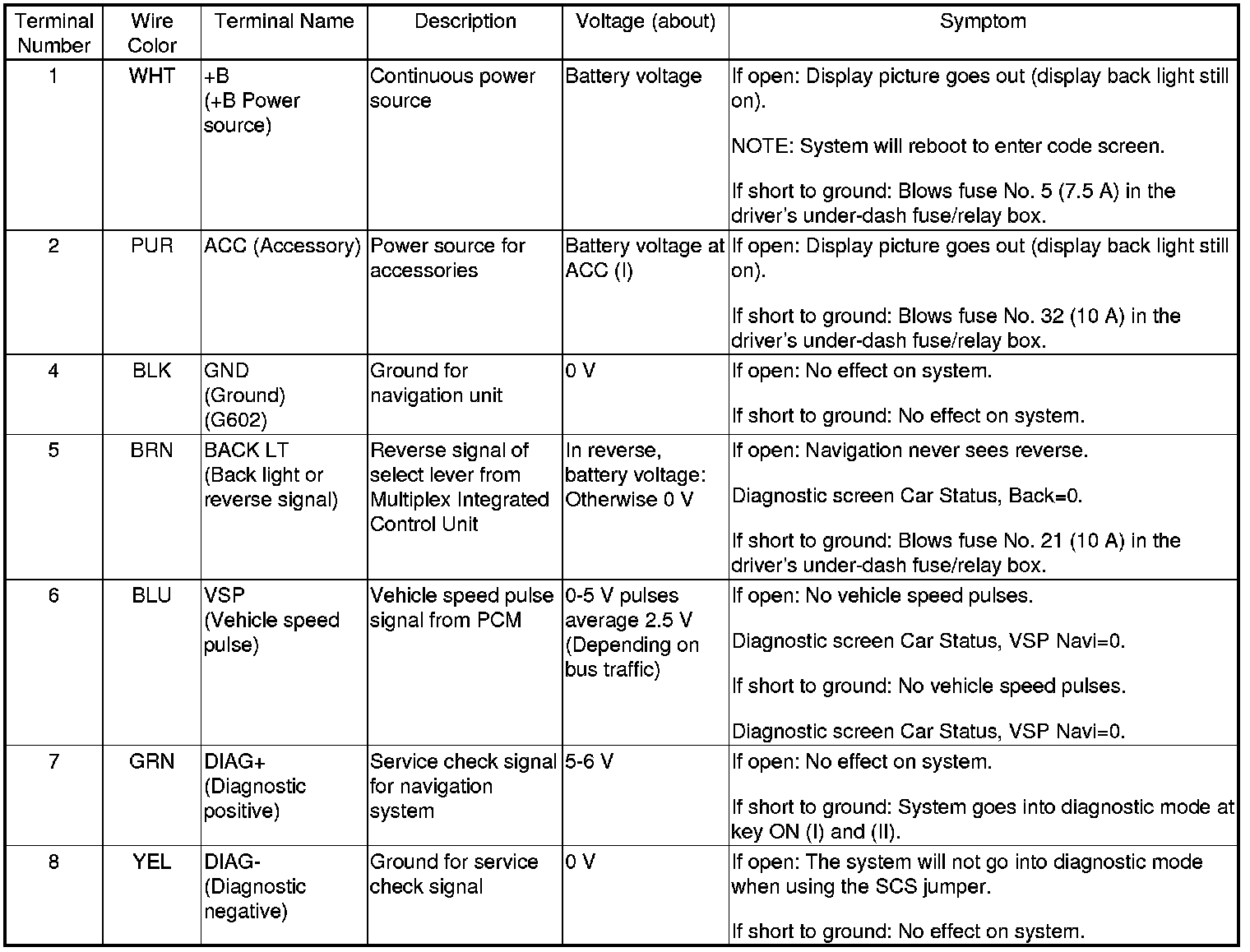 The illumination signal (headlights ON) is used by the navigation unit to automatically switch the display between Night and Day brightness modes when display is set to Auto. When the instrument panel is set to night and the brightness control is set to full brightness (hold both + and - key at the same time), the navigation system stays in the day mode, even with the headlights on.