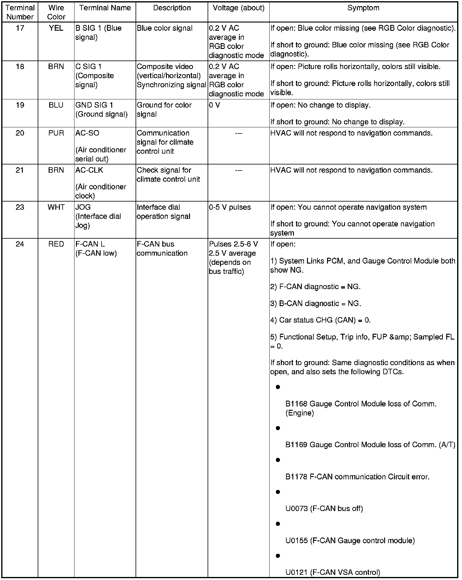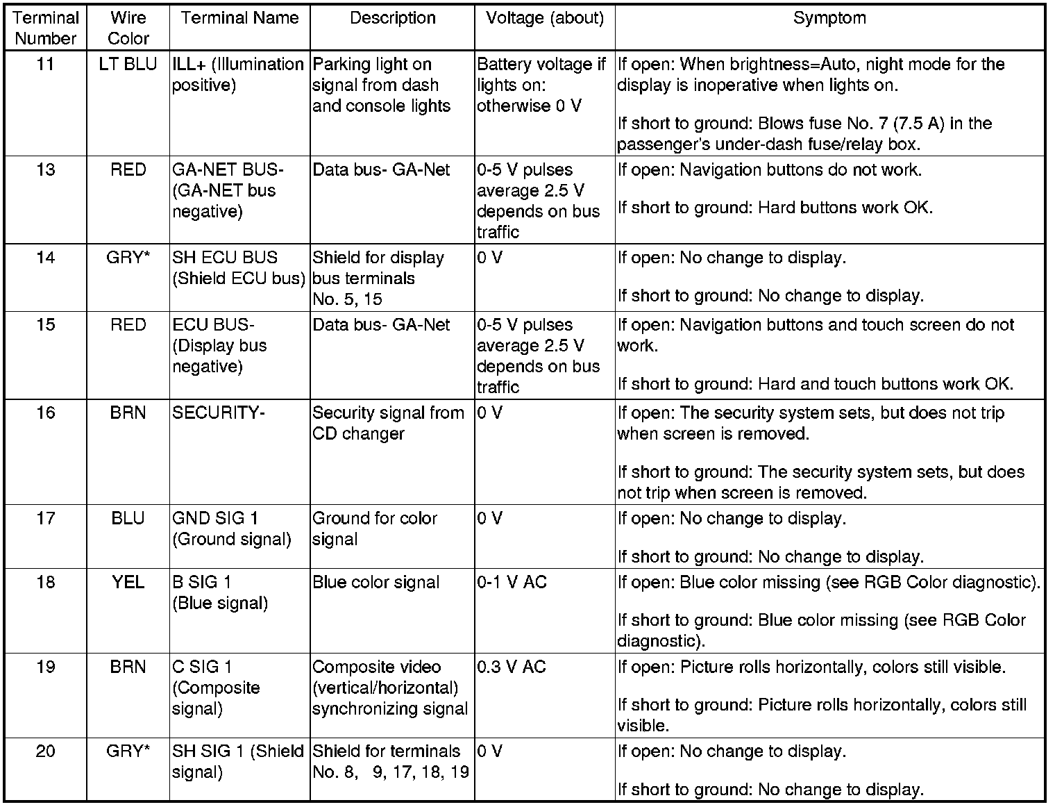 Navigation Display Unit 20P Connector