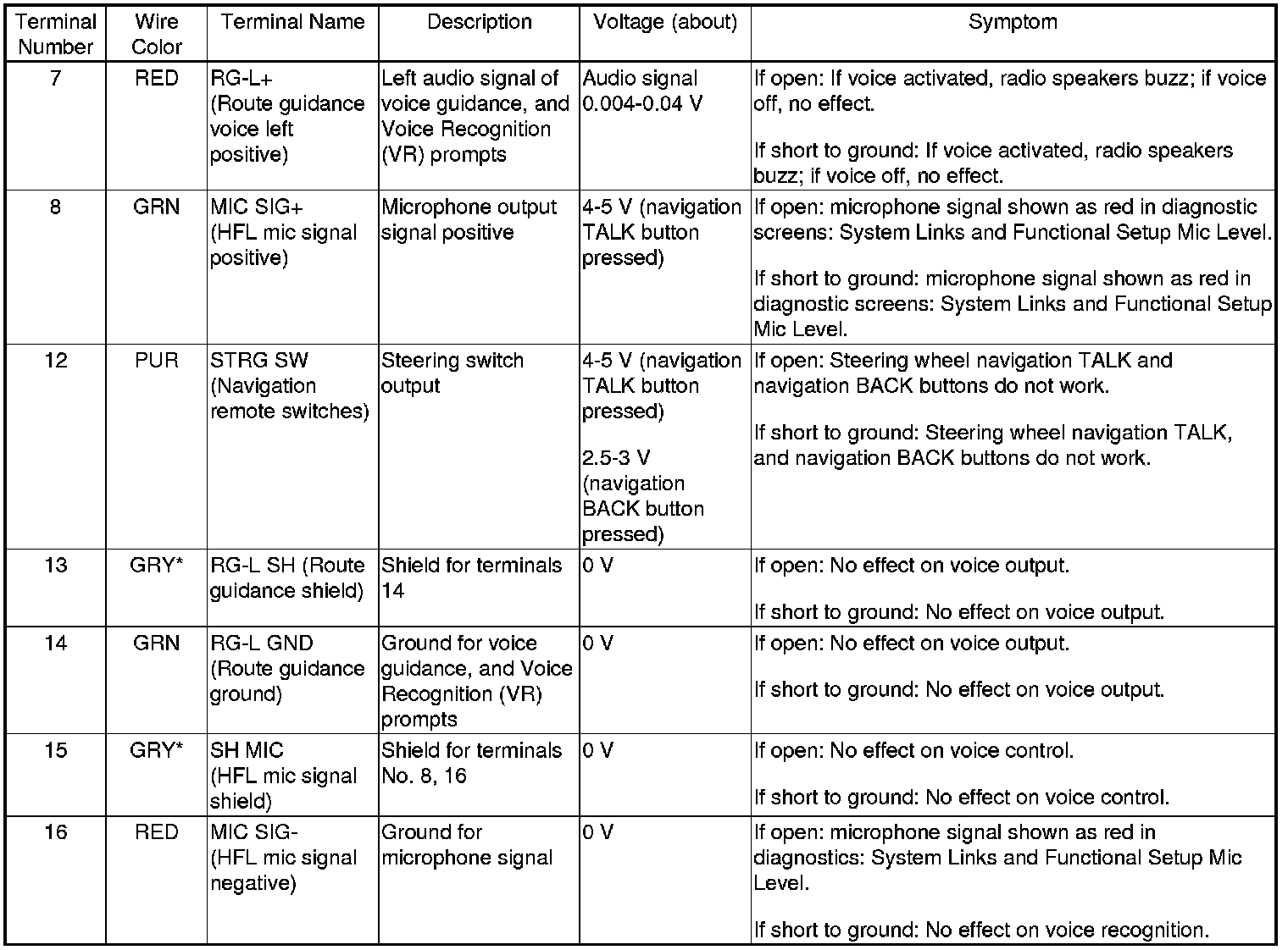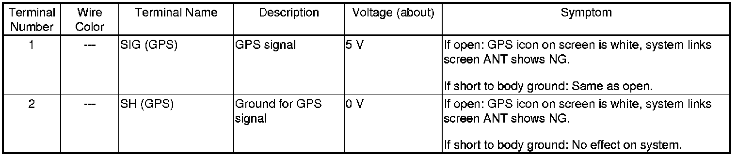 The GA-Net bus passes audio and navigation commands throughout the navigation and audio components. These commands include navigation audio/XM selections by voice, and XM station and music title names. Because the entire bus is interconnected between components, an open or short in the GA-Net bus harness may cause any or all of these functions to become inoperative.