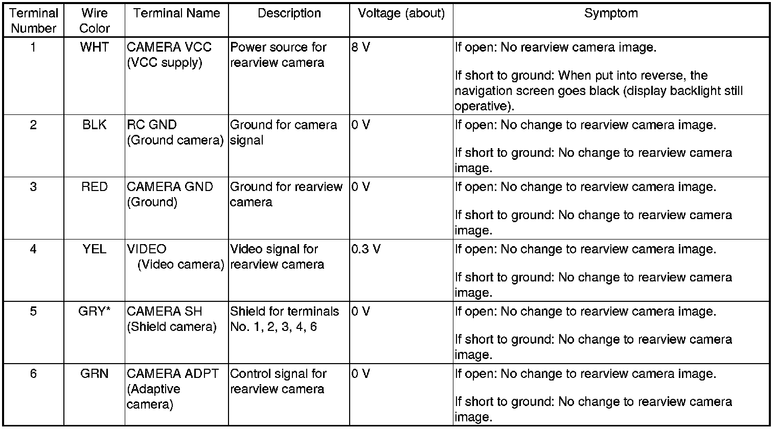 Rearview Camera 6P Connector