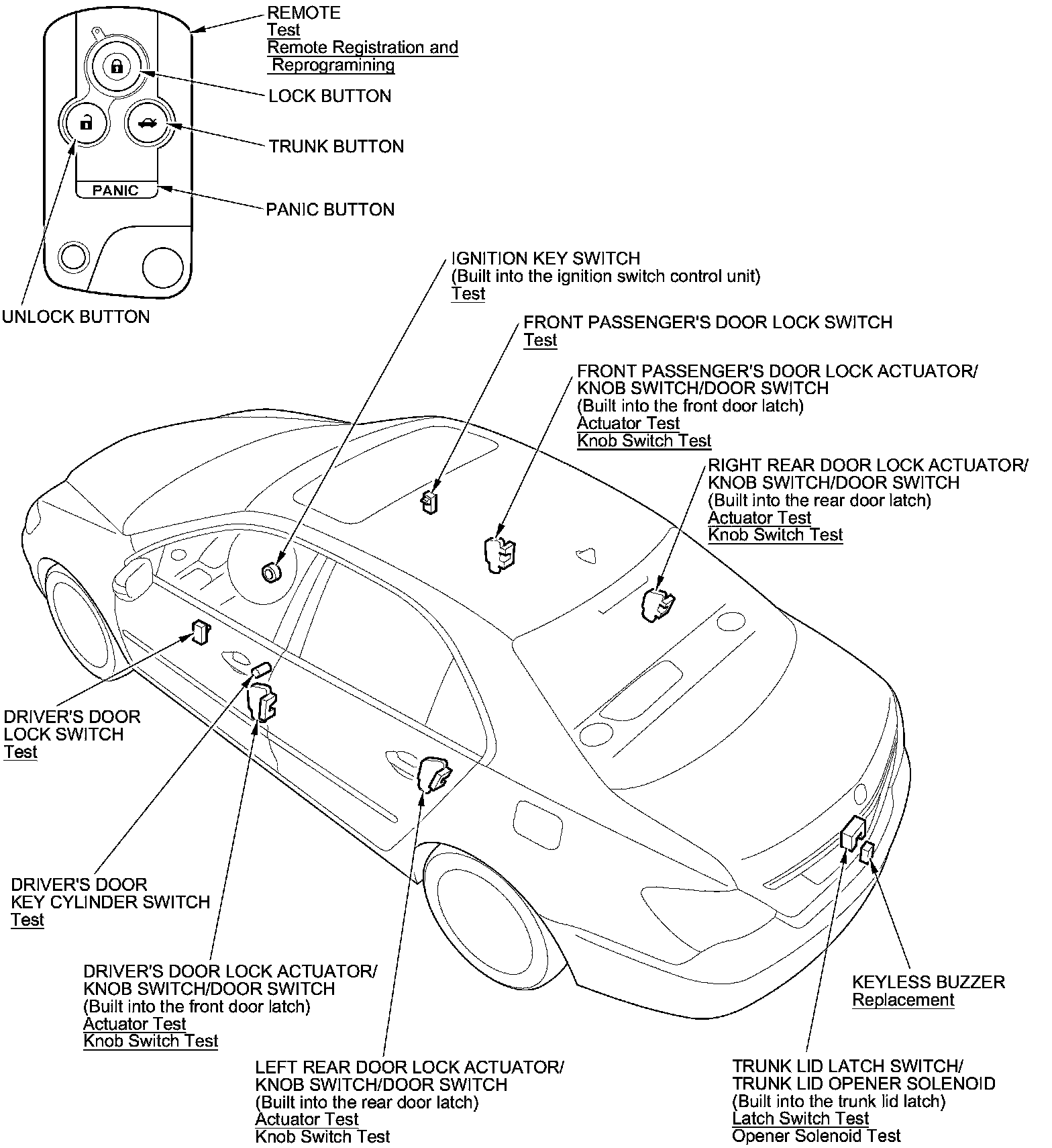 Keyless/Power Door Locks/Security System Component Location Index