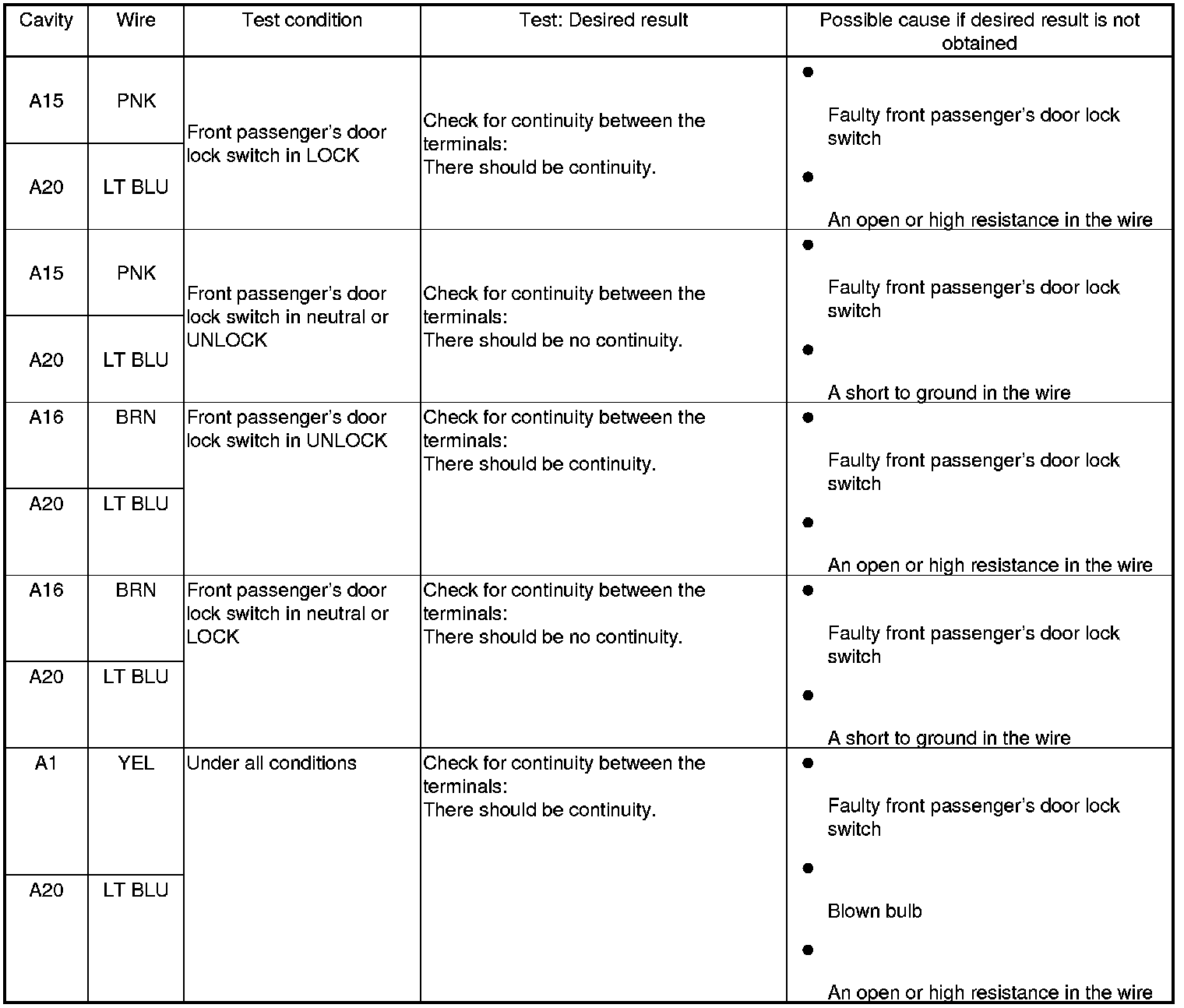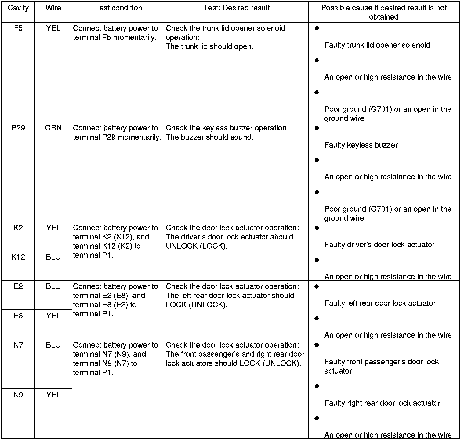 Keyless/Power Door Locks/Security System (MICU, Driver's and Passenger's MPCS Unit, and Left and Right Rear Window Switch) Input Test