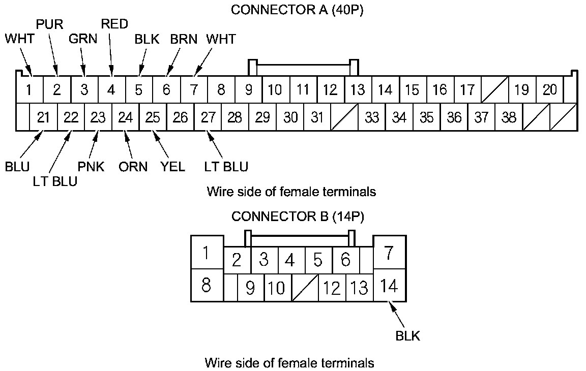 8. Disconnect driver's MPCS unit connectors A (40P) and B (14P).
