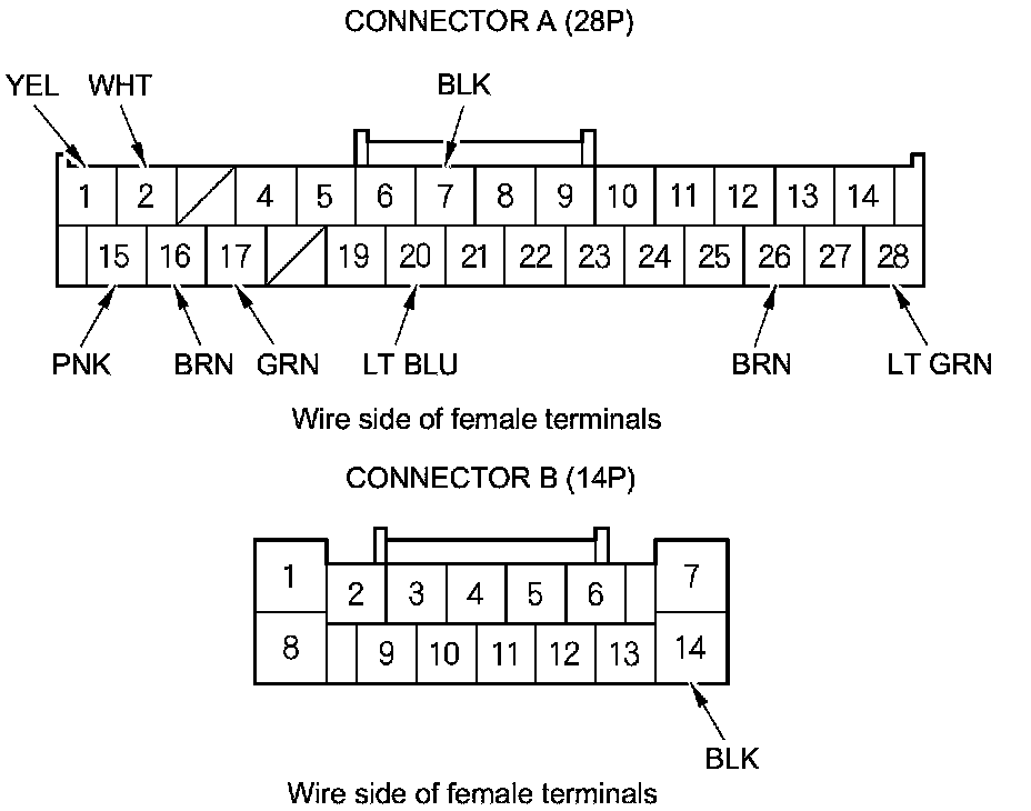 14. Inspect the connector and socket terminals to be sure they are all making good contact.