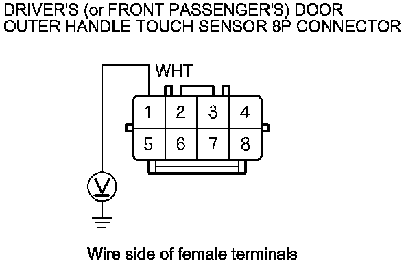 10. Measure the voltage between outer handle touch sensor 8P connector terminal No. 1 and body ground.