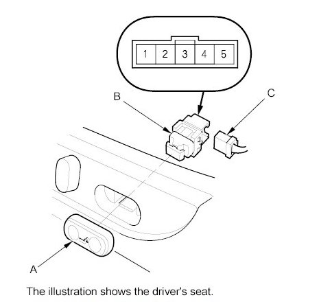 1. Separate the lumbar support switch cover (A) from the switch (B) to remove the switch.