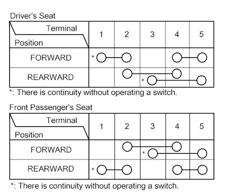 3. Check for continuity between the terminals in each switch position according to the table.