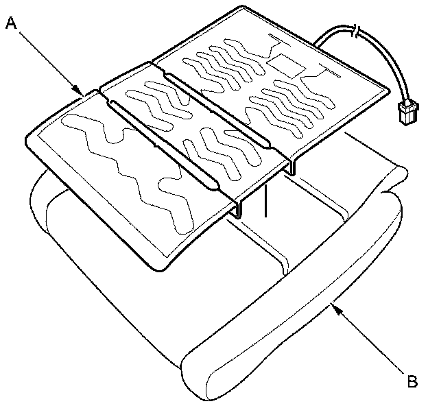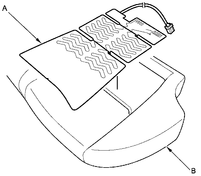 2. Carefully remove the seat cushion heater (A) from the seat cushion pad (B).