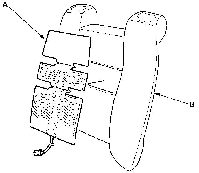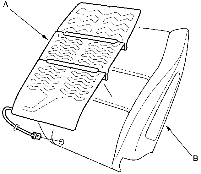2. Carefully remove the seat-back heater (A) from the seat-back pad (B).