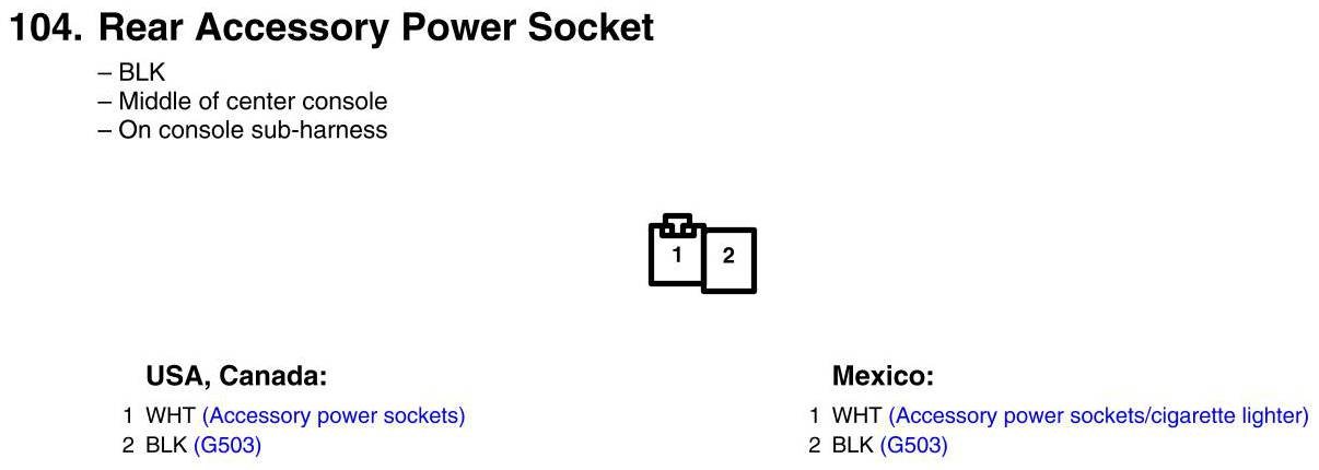 View 104 - Rear Accessory Power Socket Connector View