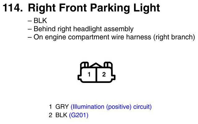 View 114 - Right Front Parking Light Connector View