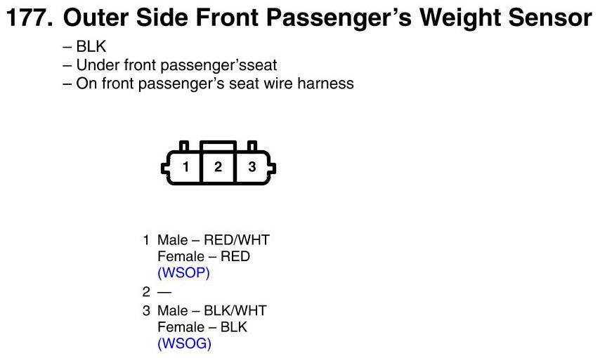 View 177 - Outer Side Front Passenger's Weight Sensor Connector View