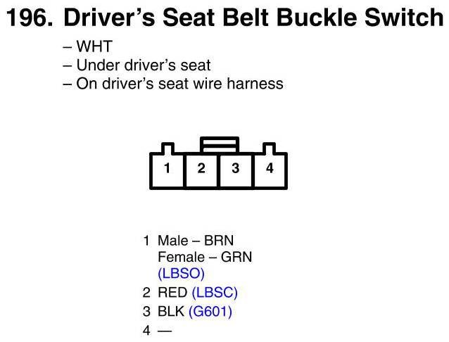 View 196 - Driver's Seat Belt Buckle Switch Connector View
