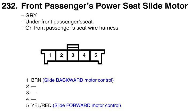 View 232 - Front Passenger's Power Seat Slide Motor Connector View