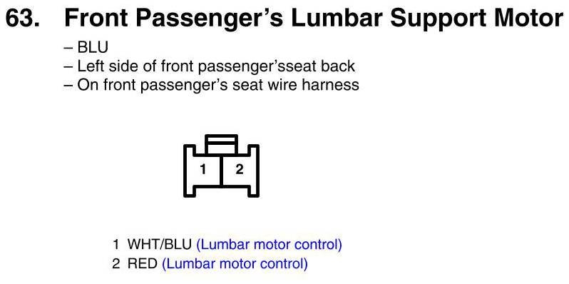 View 63 - Front Passenger's Lumbar Support Motor Connector View
