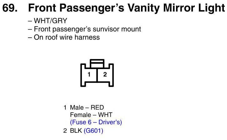 View 69 - Front Passenger's Vanity Mirror Light Connector View