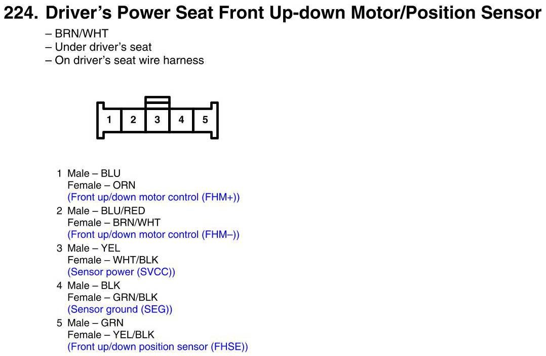 Driver's Power Seat Front Up-Down Motor/Position Sensor Connector View