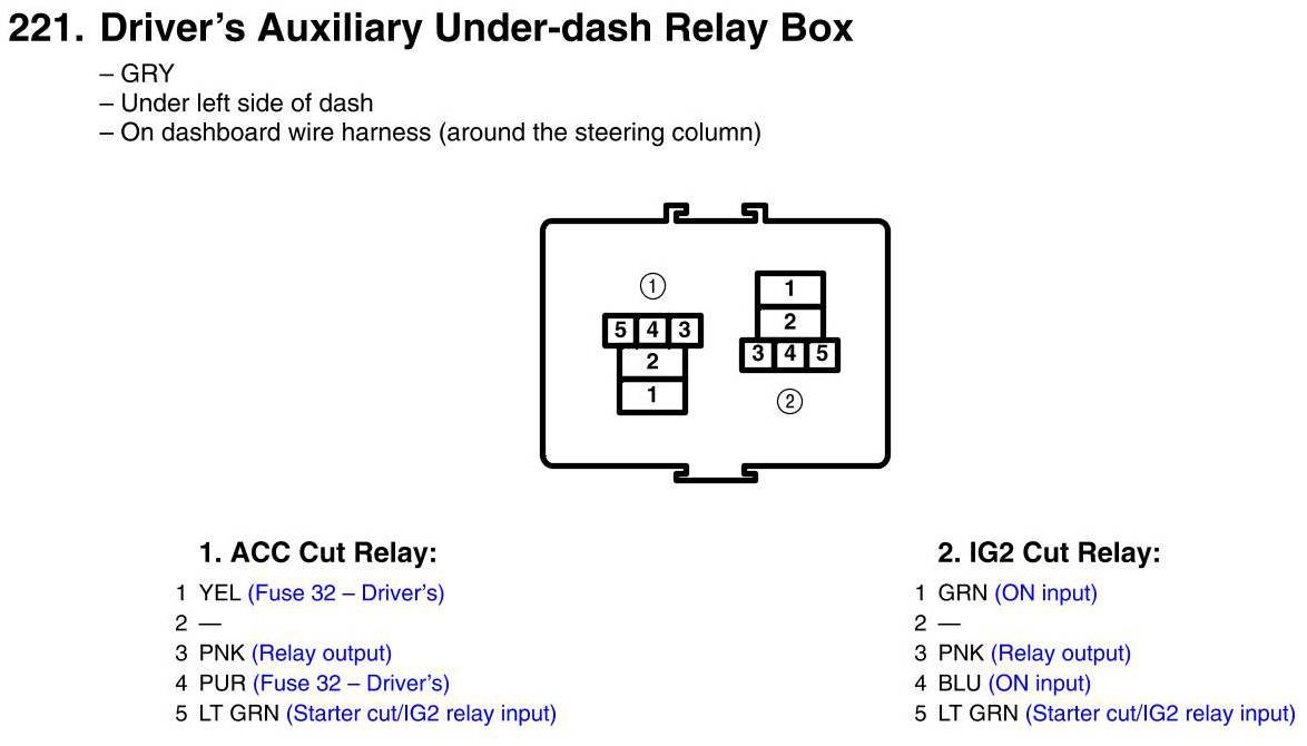 Driver's Auxiliary Under-dash Relay Box Connector View