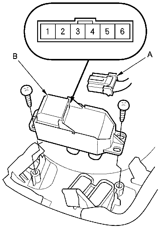 2. Disconnect the 6P connector (A) from the dash lights brightness controller (B).