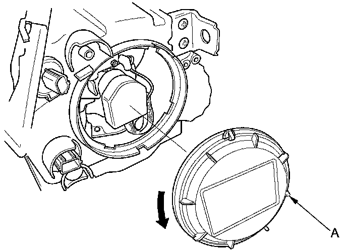 4. Turn the cover (A) 45 ° counterclockwise to remove it from the headlight assembly.